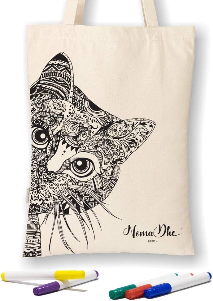 Shopper Paris Set Di 5 Pennarelli Da Tessuto Nomadhe Kit Zaino Sacca Sportiva E Borsa Shopper Da Viaggio In 100 Cotone Con Disegno Da Colorare Idea Regalo Per Ragazza E Ragazzo Mandala Sacche Valigeria