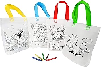 Borsa In Tnt Con 2 Soggetti Disegno Per Bambini Da Colorare Con Pastelli Inclusi