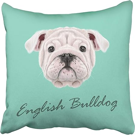 Kinhevao Cuscino Di Tiro Decorativo Disegno Ritratto Di Bulldog Inglese Cucciolo Carino Soffice Faccia Bianca Cane Domestico Sul Cuscino Blu Animale Bambino Amazon It Casa E Cucina