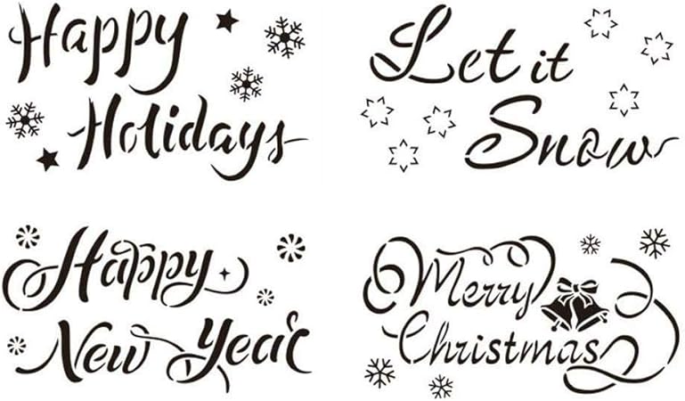 Likeitwell 4 Pezzi Stencil Per Pittura In Plastica Temi Natalizi Lascia Che Nevichi Buone Vacanze Felice Anno Nuovo Buon Natale Pittura Fai Da Te Disegno Per L Arte Della Parete Decorazioni Amazon It Casa E Cucina