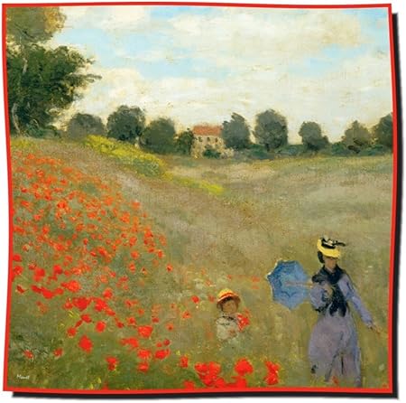 Sciarpa Di Seta Da Donna Con Disegno E Stampa Floreale Claude Monet Campo Di Papaveri Vicino A Argenteuil I Papaveri Amazon It Casa E Cucina