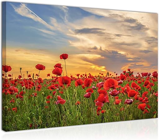 Fiori Rossi Al Tramonto Fiori Di Campo Decorazioni Interni Campo Di Papaveri Topquadro Quadro Stampa Su Tela 70x50cm Disegno Hobby Creativi