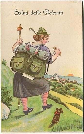 Primi 900 Dolomiti Saluti Disegno Donna Alpino Cappello Penna Zaino Fp Col Cartolina Postale Amazon It Giochi E Giocattoli