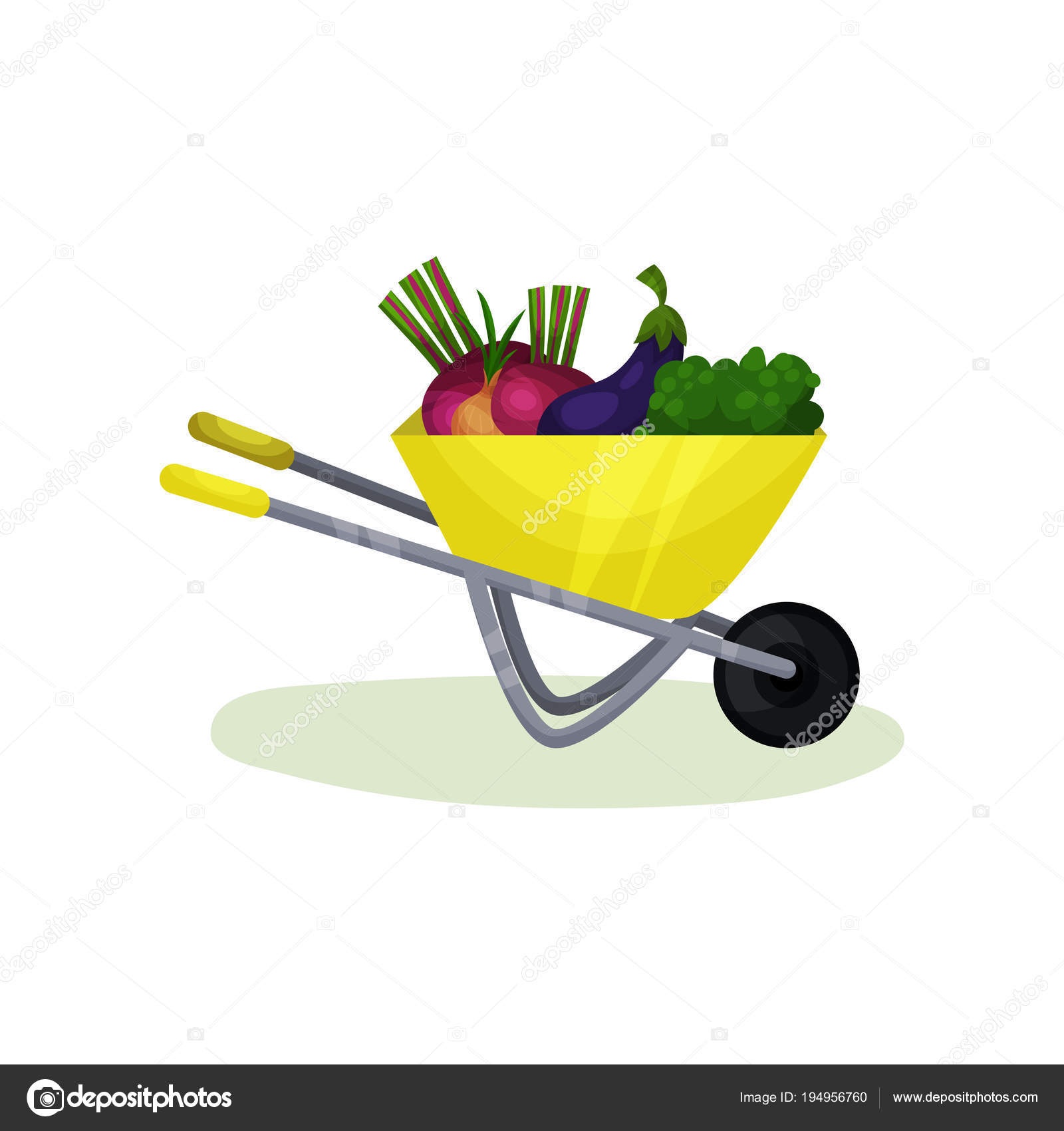 Carriola Gialla Con Verdura Matura Prodotti Agricoli Sani E Freschi Alimenti Biologici Disegno Vettoriale Piatto Vettoriali Stock C Happypictures 194956760