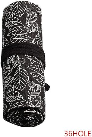 Idyandyans Wrap Cassa Nera Bianco Foglie Ha Stampato Il Modello Roll Up Pennello Su Disegno Cassa Di Matita Su Tela Schizzo Disegno Penna Pouch Bag 12 24 Fori Amazon It Casa E Cucina