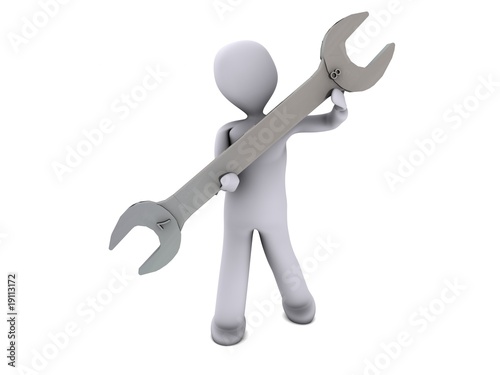 3d Uomo In Possesso Di Una Grossa Chiave Inglese In Mano Carta Da Parati Carte Da Parati Sostegno Computer Chiave Inglese Myloview It