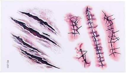 Prak Tatuaggi Temporanei Thriller Halloween Impermeabile Body Art Autoadesivo Del Tatuaggio Temporaneo Realistico Istantaneo Cucito Ferite Cicatrici Spaventose Disegno Temporaneo 01 Cina Amazon It Casa E Cucina