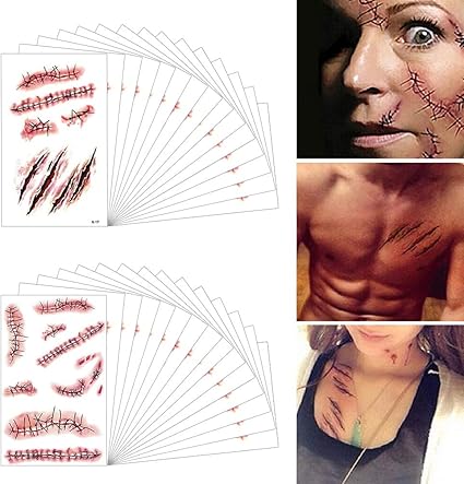 Adesivo Per Tatuaggi Di Halloween Impermeabile Temporaneo Orrore Realistico Punto Cicatrice Ferita Adesivi Per Il Corpo Per Masquerade Prank Trucco Cosplay Zombi Amazon It Casa E Cucina