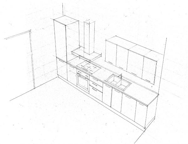 Prospettiva Accidentale Di Una Cucina Disegno Prospettico Prospettiva Progetti