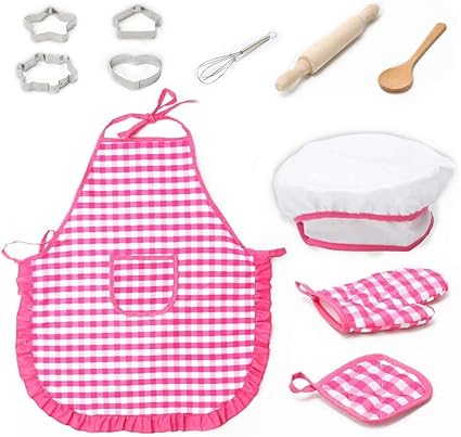 Womdee Set Da Cuoco Per Bambini Cappello Da Chef E Grembiule Set Da Cucina Gioco Di Ruolo Giocattolo Accessori Per Vestiti Cucina Pittura Disegno Per Bambini E Bambine Di 3 Anni Lattice