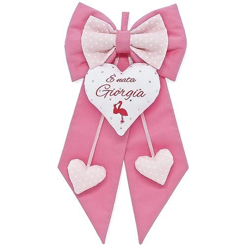 Fiocco Nascita Bimba Rosa In Tinta Unita E Rosa A Cuoricini Da Personalizzare Coccarda Nascita Con Disegno E Frase Ricamati Personalizzabili Amazon It Handmade