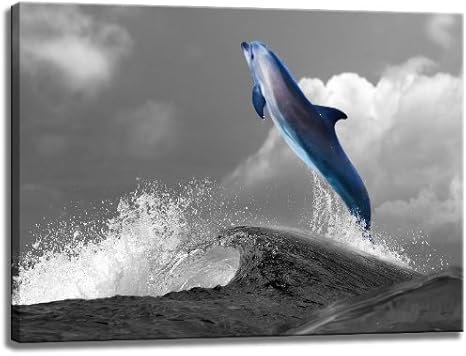 Delfino Che Salta Fuori Dall Acqua Disegno In Bianco Nero Con Elementi Di Colore Su Tela Nel Formato 80x60 Cm Stampa Artistica Di Elevata Qualita Come Un Murale Piu Economico Di Un Dipinto Ad Olio Attenzione No Poster Amazon It Casa E Cucina