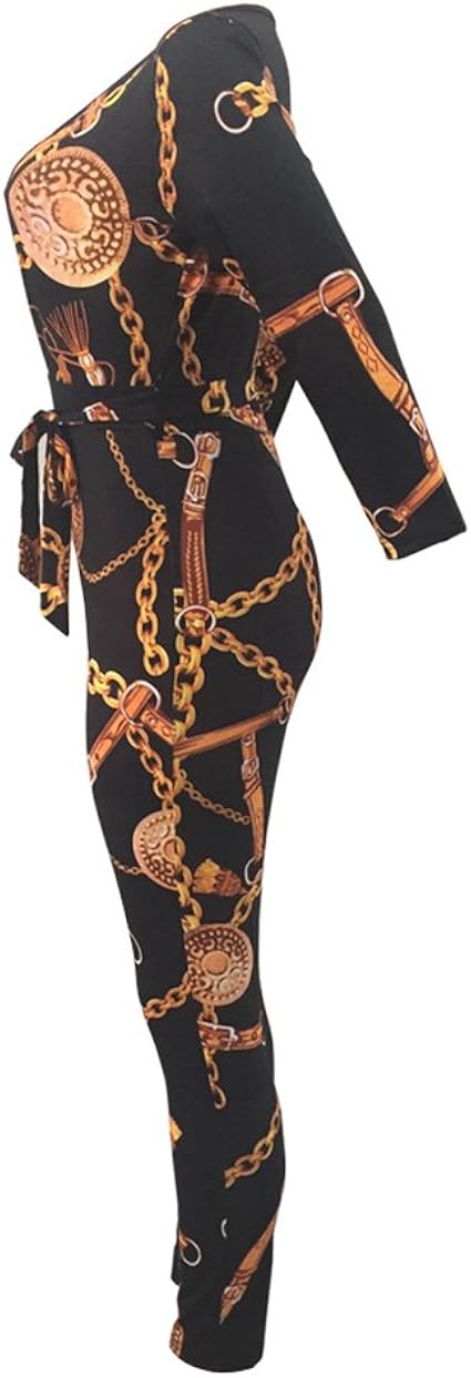 Yaancun Donna Autunno Collare Deep V Disegno Di Stampa Manica Lunga Pantaloni Siamesi Ifgf Org Au