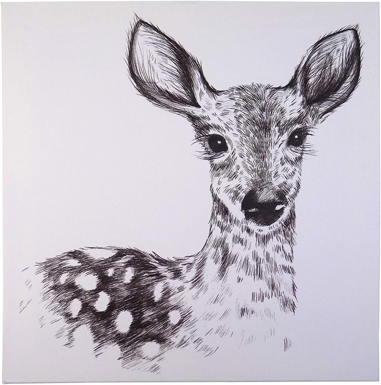 Disegnato Cervo Bianco Nero Disegno Legno Foto 40cm X 40cm Amazon It Giardino E Giardinaggio