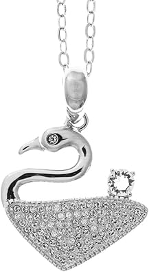 Collana Placcata In Oro Bianco 18 K Con Un Grazioso Disegno Del Cigno 40 6 Cm Catena Allungabile E Cristalli Di Alta Qualita By Matashi Amazon It Gioielli