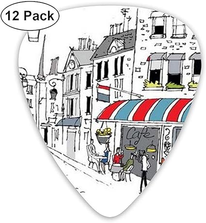 Disegno Di Una Strada A Parigi Un Caffe E Il Lampione Scelte Di Chitarra Classica Confezione Da 12 Per Chitarra Elettrica Chitarra Acustica Mandolino Amazon It Strumenti Musicali E Dj