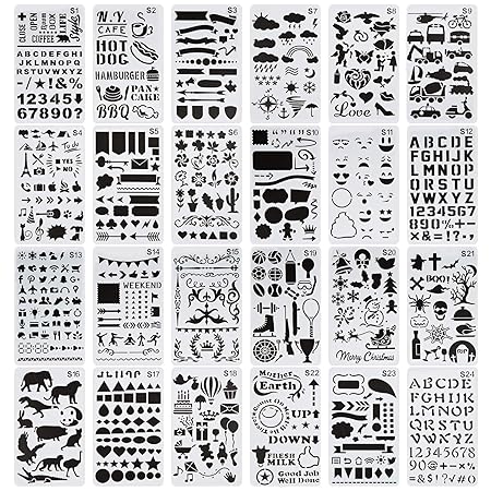Stencil Casa E Cucina Outus 24 Pezzi Stencil Disegno Modello Disegno Diario Stencil Con 15 Cm Righello In Acciaio Inox Per Taccuino Giornale Diario Scrapbook Disegno Craft