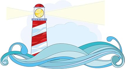 Adesivo Murale Camera Per Bambini Faro Con Onde E Fasci Di Luce Decorazione Mar Amazon It Prima Infanzia