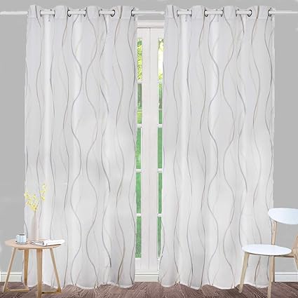 Simpvale Tende 2 Pannelli Trasparenti Con Occhielli Voile Con Disegno A Strisce Per Finestre Camera Da Letto E Soggiorno Balcone 140x270cm Marrone Chiaro Amazon It Casa E Cucina