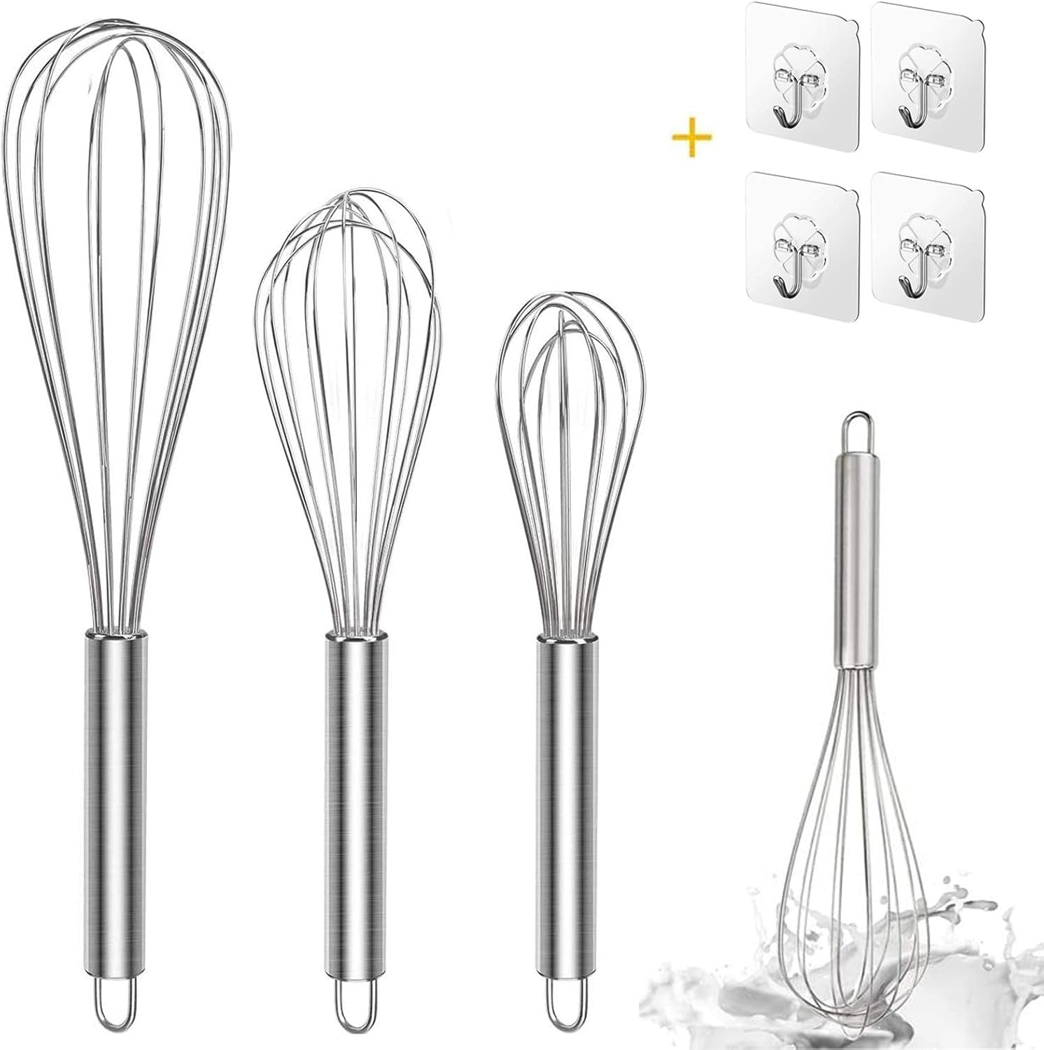 Cersaty Set Di 4 Frusta A Mano Acciaio Inox Professionale 15 5cm 21 5cm 25 5cm 30cm Per Fruste Da Cucina Uova Latte Con 4 Ganci Adesivi Amazon It Casa E Cucina