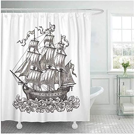 Hjlhfd Tenda Da Doccia Con Ganci Galeone Inchiostro E Penna Disegno Vela Nave Su Barca Bianca Mare Bagno Tende Per La Decorazione Domestica 180 200 Cm Amazon It Casa E Cucina