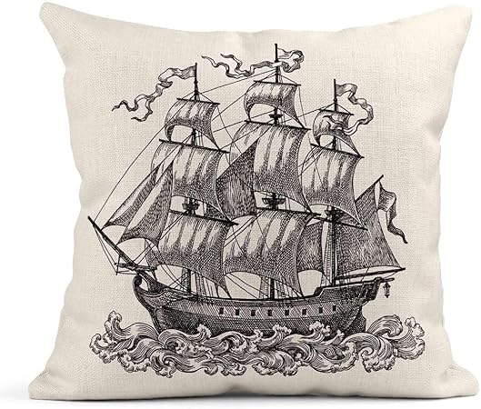 Kinhevao Cuscino Da Tiro Galeone Inchiostro E Penna Disegno Antica Nave A Vela Su Barca Medievale Cuscino Decorativo Per La Casa In Lino Antico Amazon It Casa E Cucina