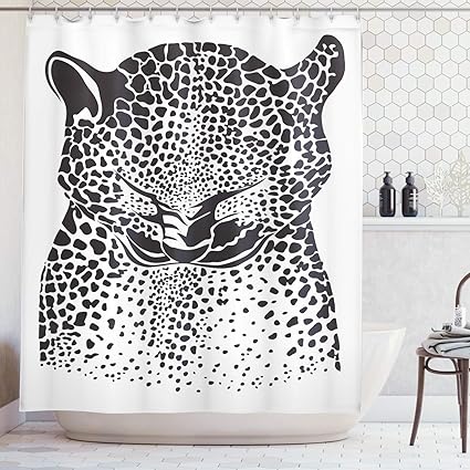 Abakuhaus Giaguaro Tenda Da Doccia Doodle Disegno Della Pelle Woodland Tessuto Set Di Decorazioni Per Il Bagno Con Ganci 175 X 240 Cm Bianco E Nero Amazon It Casa E Cucina