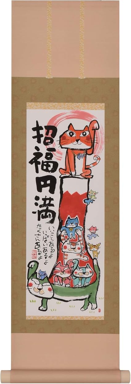Karu Jiku Mini Kakejiku Arte Giapponese Pergamena Tradizionale Stile Moderno Neko To Akafuji Cat Red Fuji Amazon It Casa E Cucina