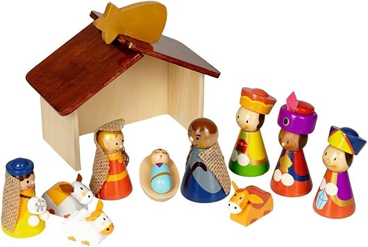 Grotta In Legno Nascita Gesu Bambino Con 10 Personaggi Amazon It Giochi E Giocattoli