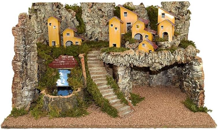 Grotta Presepe E Borgo Con Case Su 3 Livelli 60x40x50 Capanne Rustiche Presepe Casette
