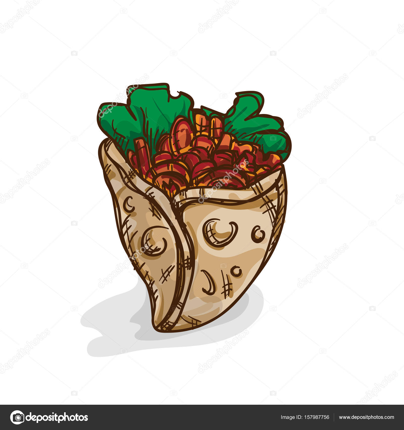 Illustrazione Vettoriale Disegnata A Mano Di Doner Kebab Rotolo Rotolo Di Pollo Fast Food Kebab Shawarma Stile Cartone Animato Immagini Vettoriali Stock E Altre Immagini Di Arabesco Stili Istock