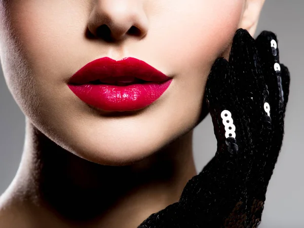 Sensuale Labbra Rosse Aperte Succose Con Le Dita Vettore Premium