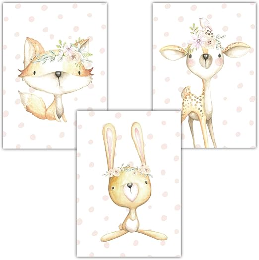 Frechdax Set Di 3 Poster Per La Cameretta Dei Bambini Formato Din A4 Con Animali Della Foresta Cerbiatto Volpe Lepre 3er Set Punkte Baby Hase A4 Din Amazon It Casa E Cucina