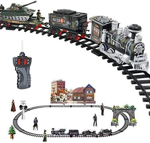 Tosbess Treno Elettrico Classico Per Bambini Rc Locomotiva A Vapore Con Luce E Fumo Pista Macchinine