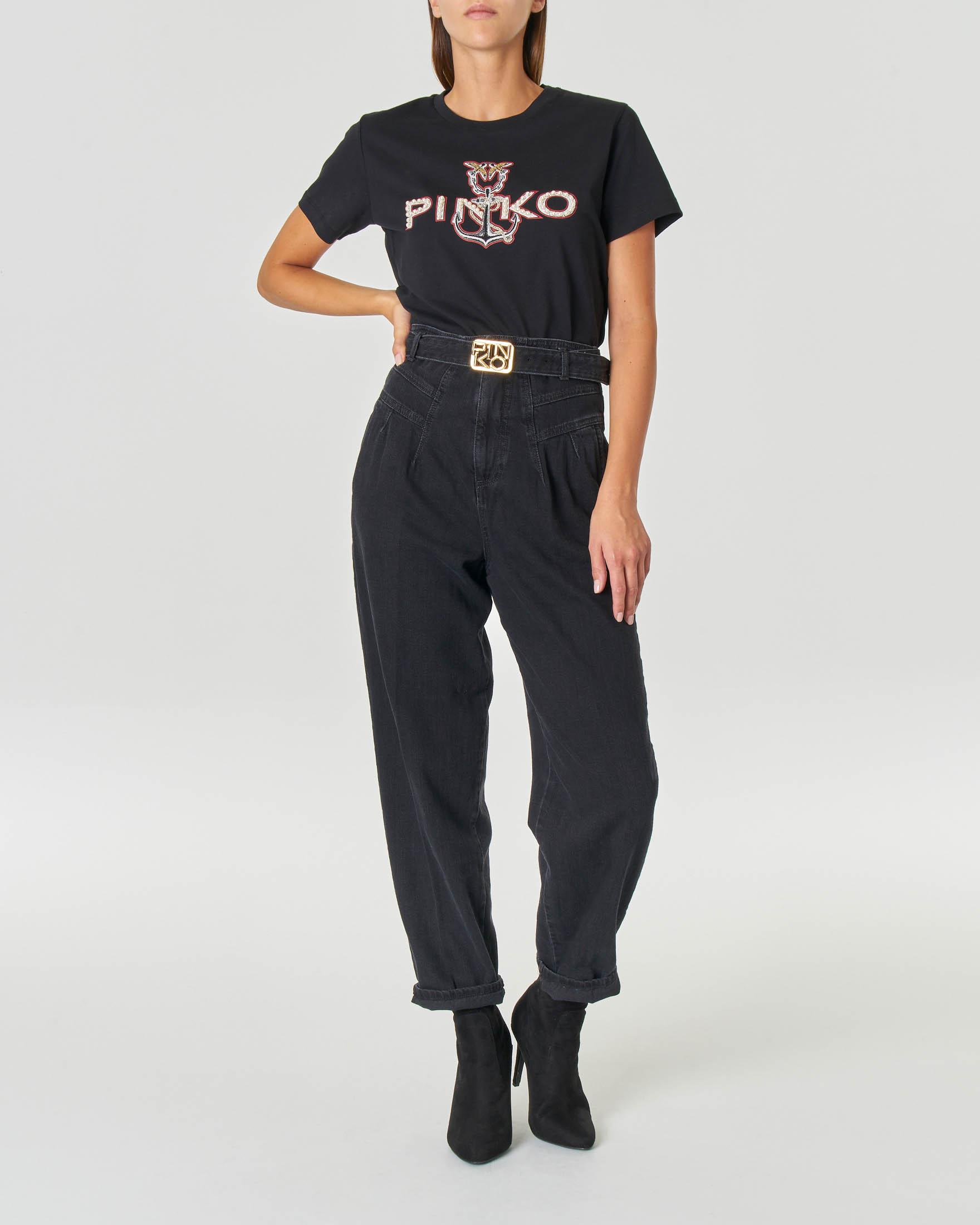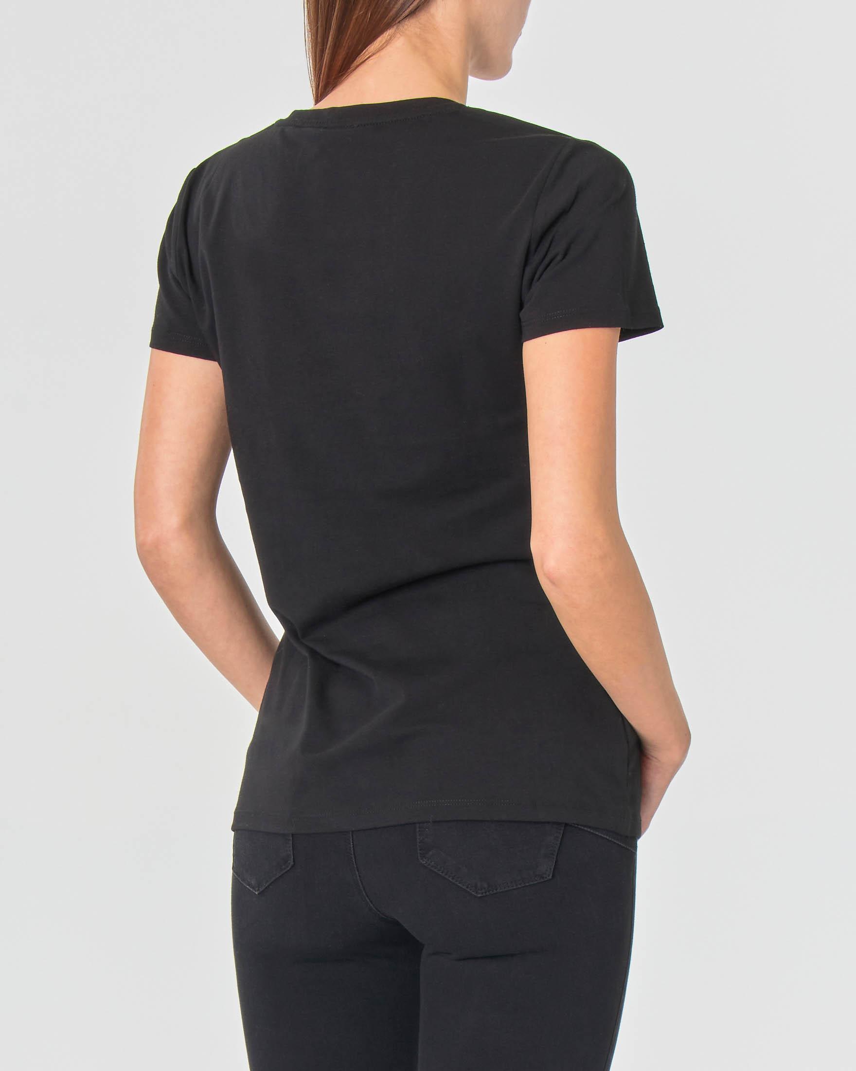 T Shirt Nera In Cotone Stretch Con Dettagli In Ecopelliccia Paillettes E Tulle Del Disegno Stampato Pellizzari E Commerce