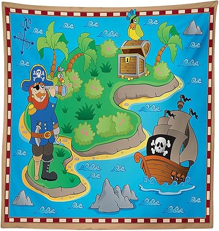 Isola Mappa Decor Tovaglia Divertente Fumetto Dell Isola Del Tesoro Con Una Nave Pirata E Pappagallo