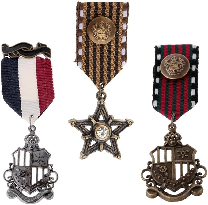 3 Pezzi Spille In Lega Con Disegno Medaglia Stella Metallo Collare Militare Per Ceremonia Apertura Festa Costume
