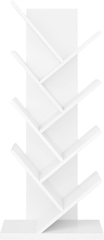 Homfa Mensola Libreria Di Legno Scaffale Espositore Porta Libri O Cd Scaffalatura Albero Decorato Per Studio O Ufficio 48 X 23 5 X 115 8 Cm Bianco Amazon It Casa E Cucina