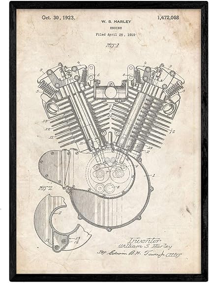 Nacnic Stampa Artistica Brevetto Harley Davidson Motore A Combustione Sfondo Vintage Disegno Vecchie Invenzioni Stampato Su Carta Da 250 Grammi Di Alta Qualita O Fare Il Regalo Perfetto Amazon It Casa E Cucina