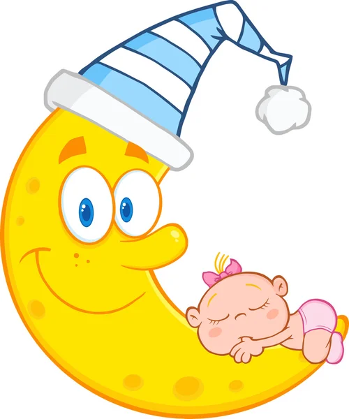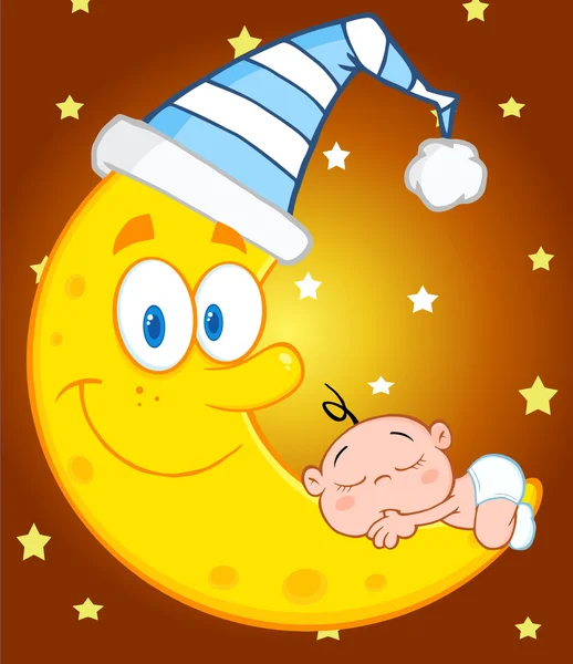 Bambino Che Dorme Sulla Luna Illustrazione Di Stock Illustrazione Di Cute Sonno 98429491