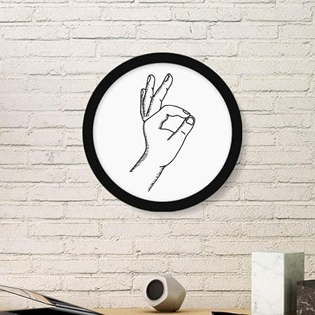 Diythinker Ok Gesto Linea Motivo Ornamentale Disegno Pittura Di Arte Della Foto Della Cornice In Legno Rotonda Regalo A Casa Della Parete Della Decorazione Grande Nero Amazon It Casa E Cucina