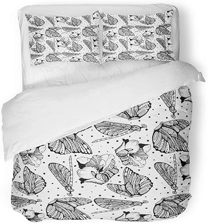 Lis Home Copripiumino 3 Pezzi Set Tessuto Microfibra Spazzolato Astratto Con Rose Libellula Farfalla Modello Zen Disegno Ornato Copripiumino Nero Libro Traspirante Con 2 Federe Amazon It Casa E Cucina