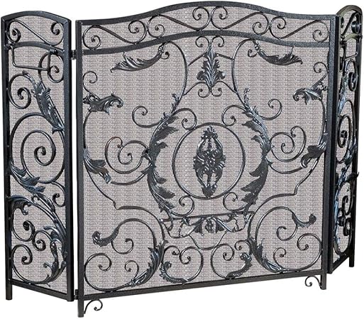 Schermo Camino Ornato Nero Disegno Floreale Ferro Maglia Schermi Di Protezione Antincendio Spark A 3 Pannelli Per Caminetto Stufa A Legna Fuochi A Gas Alto 90cm Amazon It Casa E Cucina
