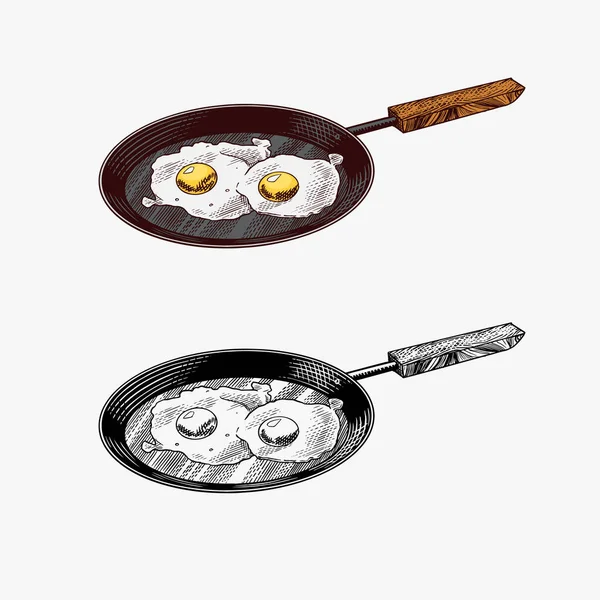 Padella Con Uova Fritte E Omelette Strapazzate Vettore Premium