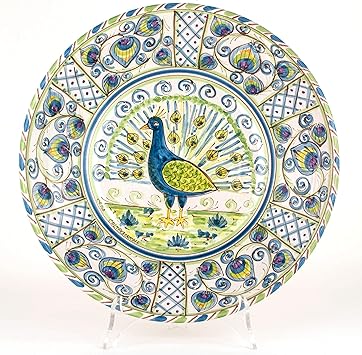 Piatto Decorativo In Ceramica O Cm 34 Di Caltagirone Fangotto Decorato A Mano Disegno Pavone Amazon It Casa E Cucina