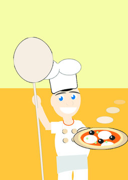Cuoco Pizzaiolo Con Pizza Vector Free Download