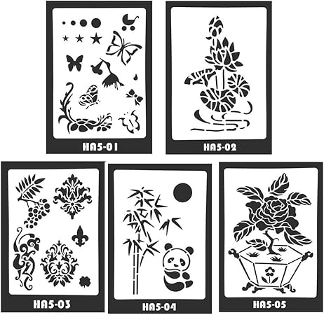 Set Di 12 Stencil In Plastica Per Disegno E Pittura Per Proiettili Diari Quaderni Disegni Fai Da Te Carte Regalo Personaggi Animali Fiori Albero E Progetti Amazon It Casa E Cucina