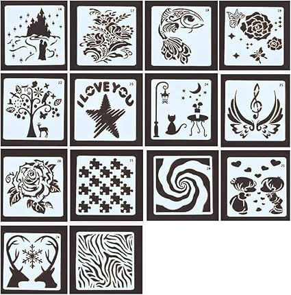 Lirener 14pcs Plastica Pittura Stencils Riutilizzabile Lavabile Plastica Fai Da Te Stencil Pittura Modelli Disegno Per Bambini Studente Adulto Scrapbooking Mestiere Album Decor 12 7x12 7cm Amazon It Cancelleria E Prodotti Per Ufficio