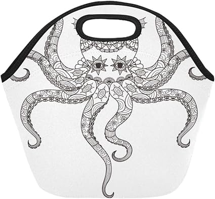 Borsa Da Pranzo In Neoprene Isolata Disegno Polpo Zentangle Design Libro Da Colorare Borsa Da Pranzo Grande Rigida Termica Riutilizzabile Borse Per Il Pranzo Scatole Per Esterno Amazon It Casa E Cucina