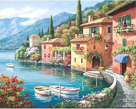 Lixb Pittura A Olio By Numbers Fai Da Te Kit Disegno Colorare Ricreativo Porto Paesaggio Marino Mano Dipingere Quadri Su Tela Wall Art Home Decor 40x50cm Senza Cornice Amazon It Casa E Cucina